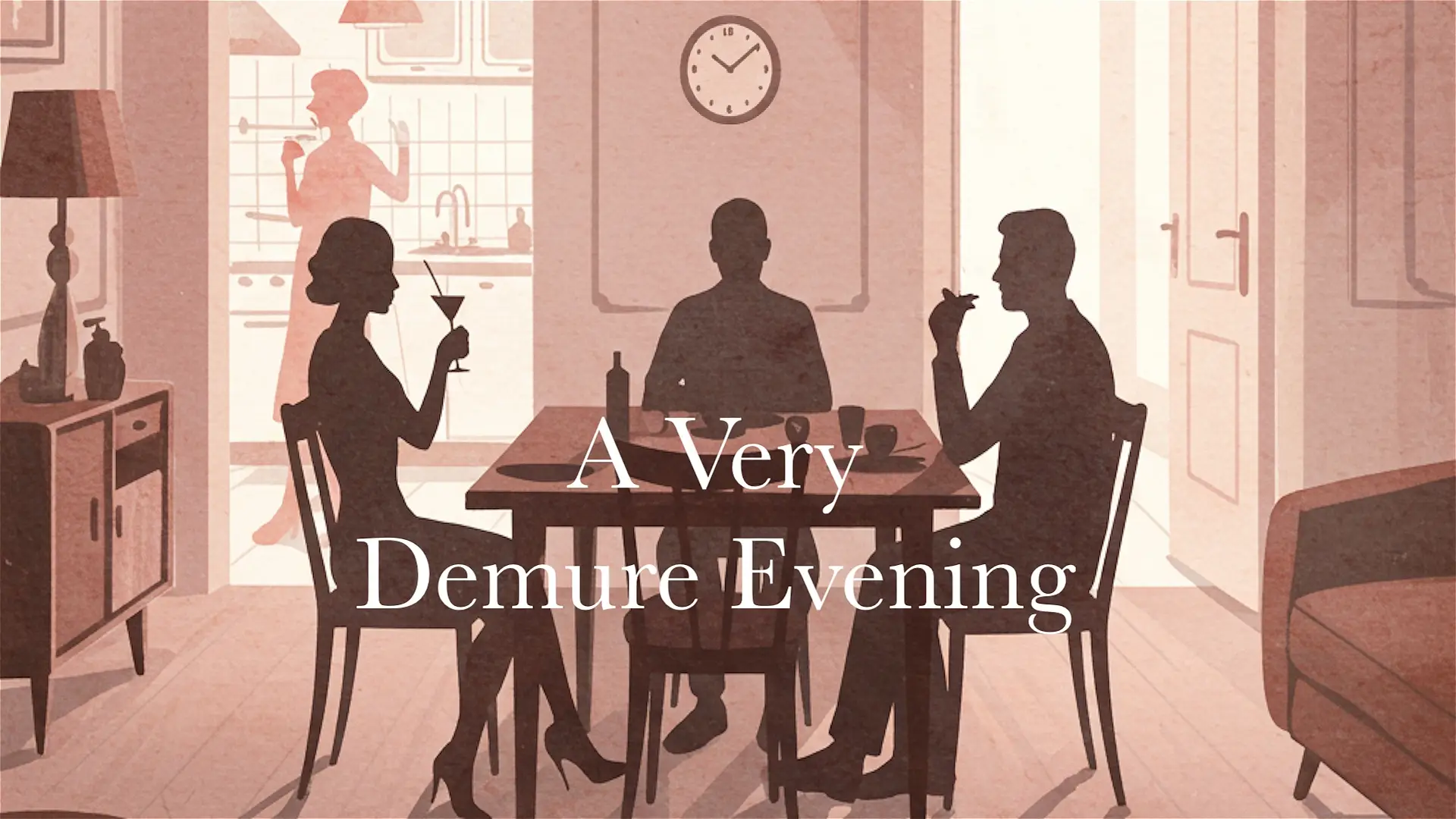 "A Very Demure Evening" invites the audience into a carefully curated dinner party that can’t quite hold itself together. At a table set for four, pleasantries simmer and politeness strains under the weight of old ties and quiet resentments. As the evening unfolds, layers of social niceties begin to peel away—revealing unspoken grievances, fragile facades, and the complex performance of being "civil."